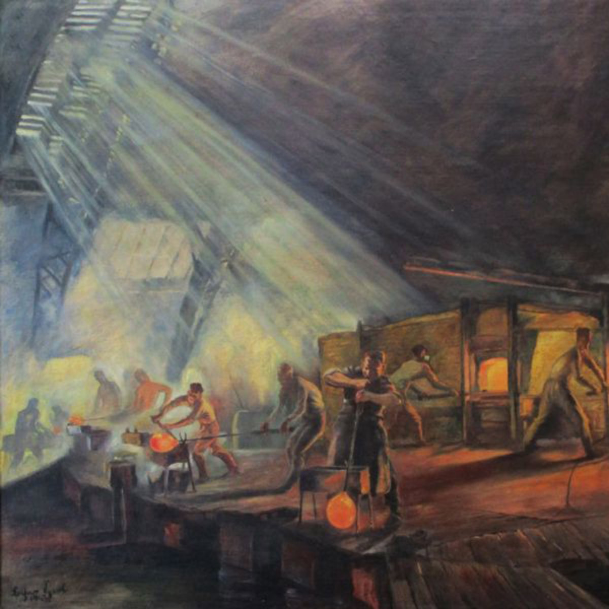 (verursacht durch den Zweiten Weltkrieg) wird die Herstellung von mundgeblasenem Flachglas wieder aufgenommen
