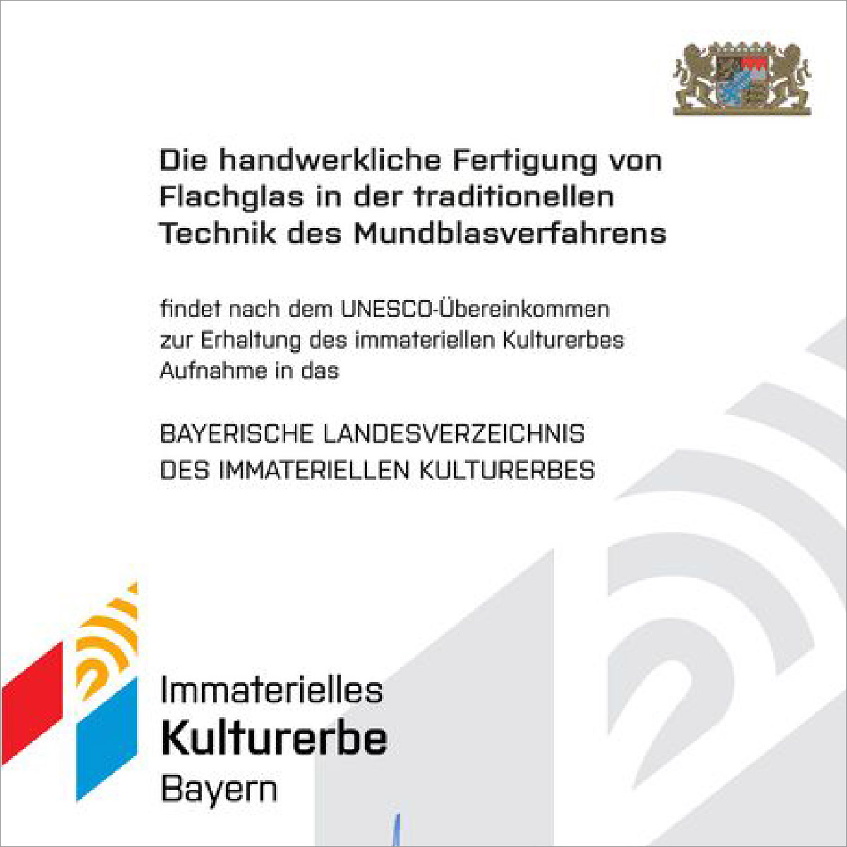 Die handwerkliche Fertigung von Flachglas in Mundblastechnik ist ab jetzt gelistet im Bayerischen Landesverzeichnis des Immateriellen Kulturerbes!
