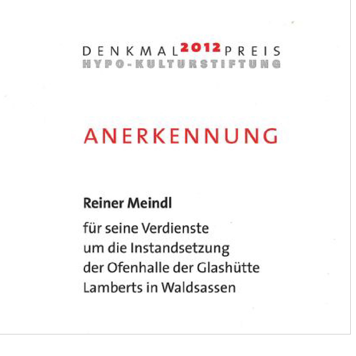 Auszeichnung „Denkmalpreis der Hypo-Kulturstiftung 2012“