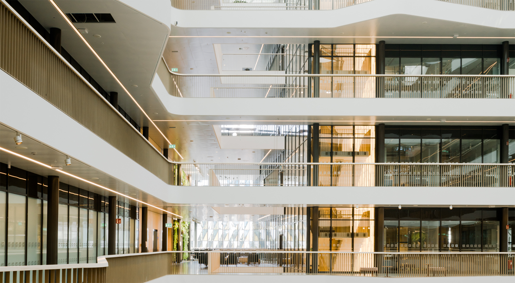 Akademiska Hus hat für den Neubau eines Laborgebäudes des Karolinska Instituts die Anfertigung eines Sonderglases bei uns beauftragt. Für die „Glas-Licht-Wand“, die nicht nur architektonisch und schön sein sollte, sondern auch funktional, wurde ein aufwendiger Doppelüberfang mit marmorierter Schattierung angefertigt. Zur Fertigstellung der vier Fassaden wurden 1.914 Tafeln LambertsGlas® zu einem Verbundglas im Format von jeweils 550x880mm verarbeitet und mittels einer ausgeklügelten Montage- und Lichtkonstruktion montiert.