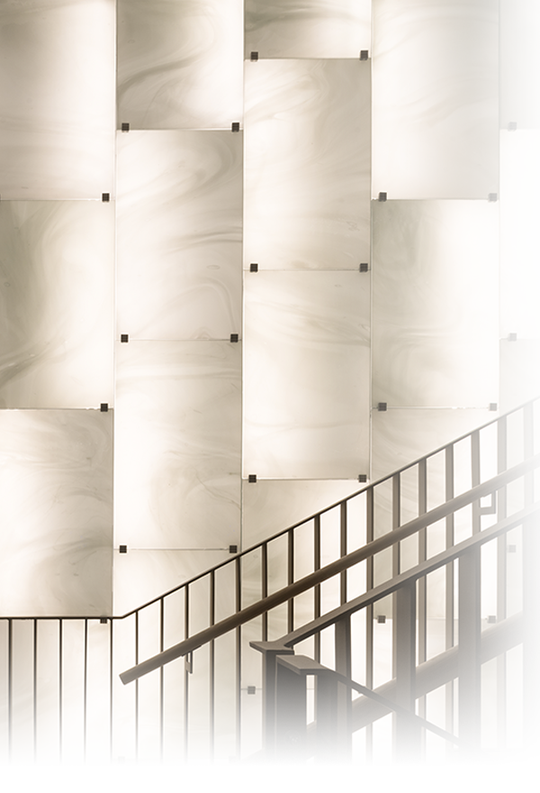 Besonders eignen sich Opale und Opake Gläser für künstlerisch gestaltete Fenster- und Türfüllungen mit gehemmter Durchsicht sowie für hinterleuchtete Wandgestaltungen.