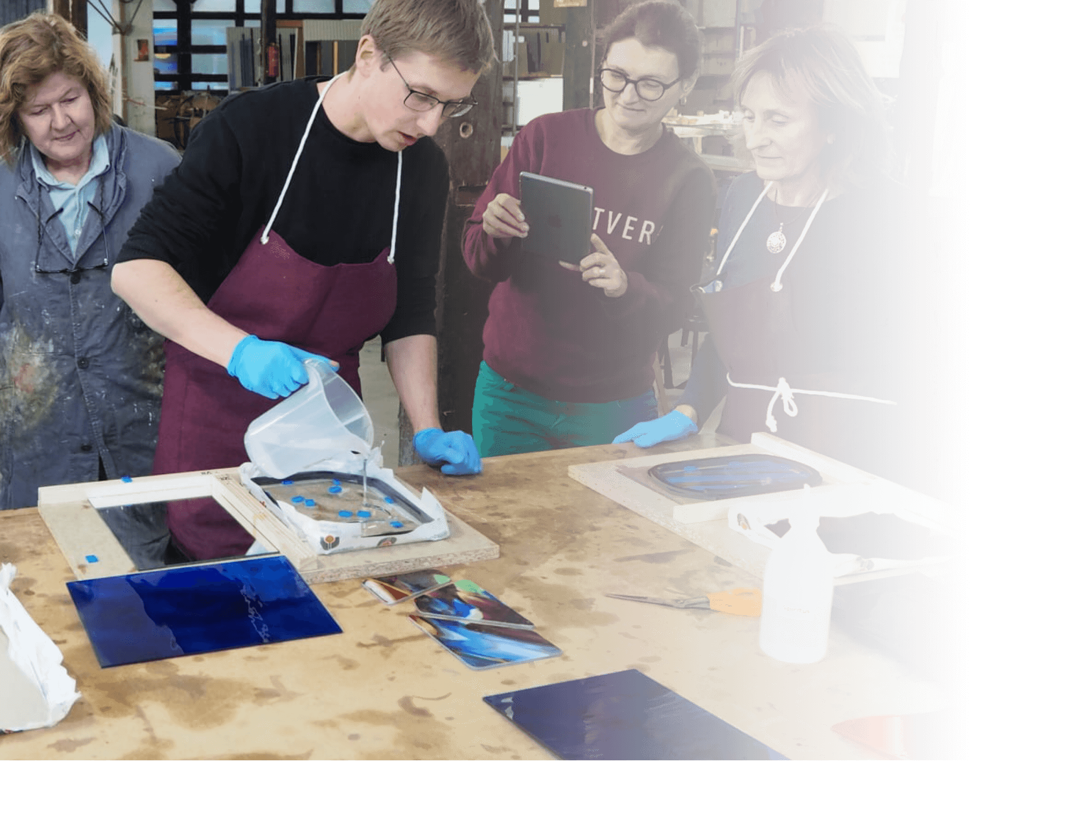 Die Glashütte Lamberts als deutschlandweit einzige Produktionsstätte mundgeblasener Flachgläser ermöglicht dem Teilnehmer im Rahmen dieses eineinhalbtägigen Seminars tiefe Einblicke in die Glasherstellung und vermittelt gleichzeitig technisches Know-How im Bereich der Glasbearbeitung und Glasgestaltung mit praktischer Umsetzung in unserer Werkstatt.