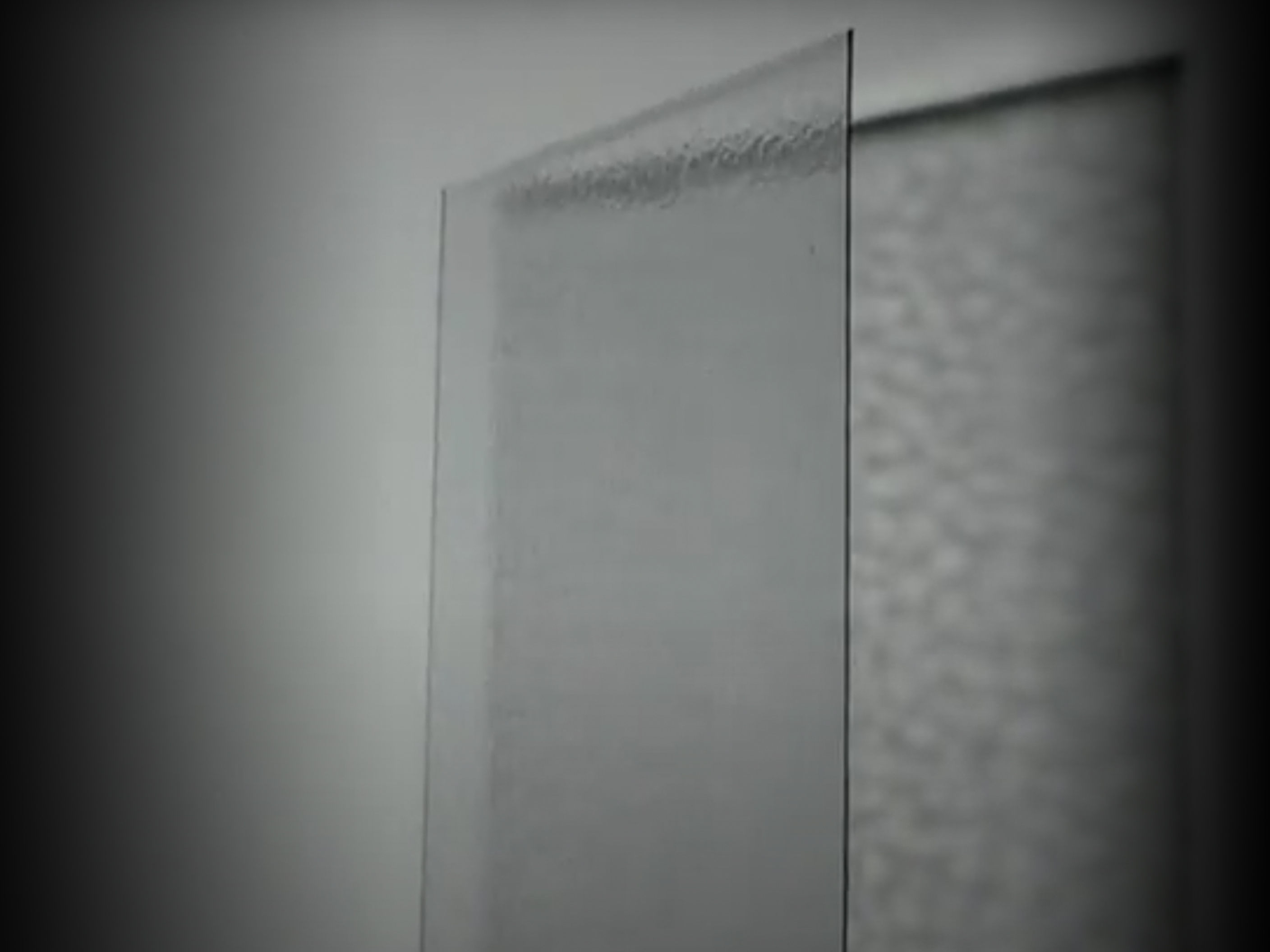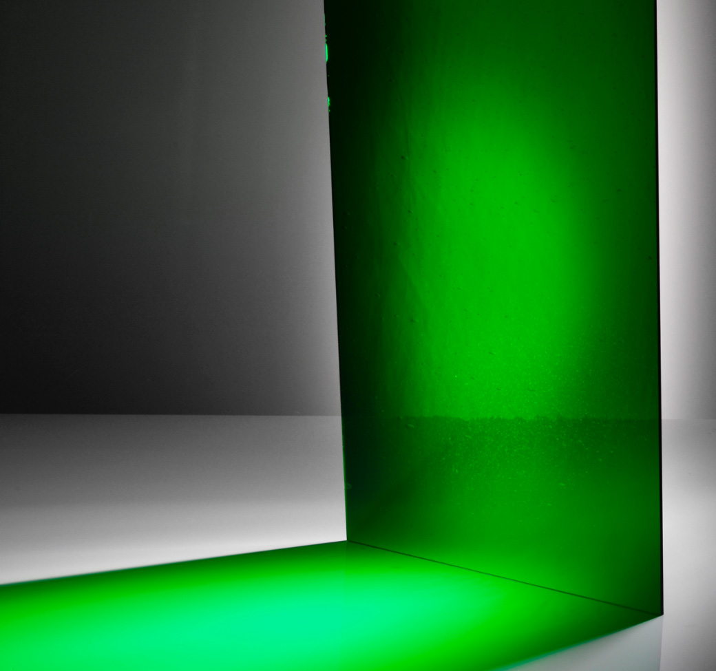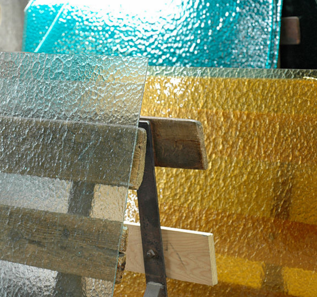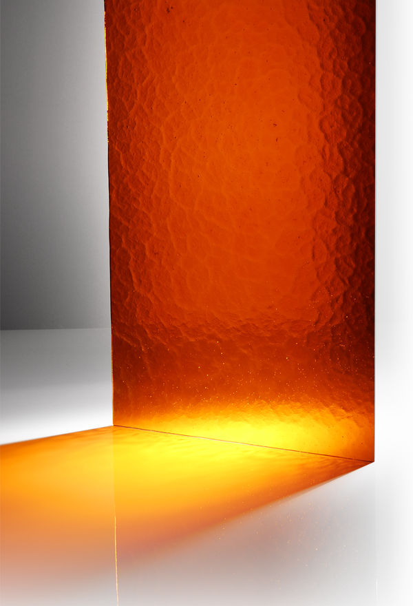 Die typische Oberfläche des Original Lamberts-Tischkathedralglases entsteht einzig und allein aus dem Temperaturgefälle zwischen Glasmasse und Stahltisch und der Konsistenz des Glases selbst.