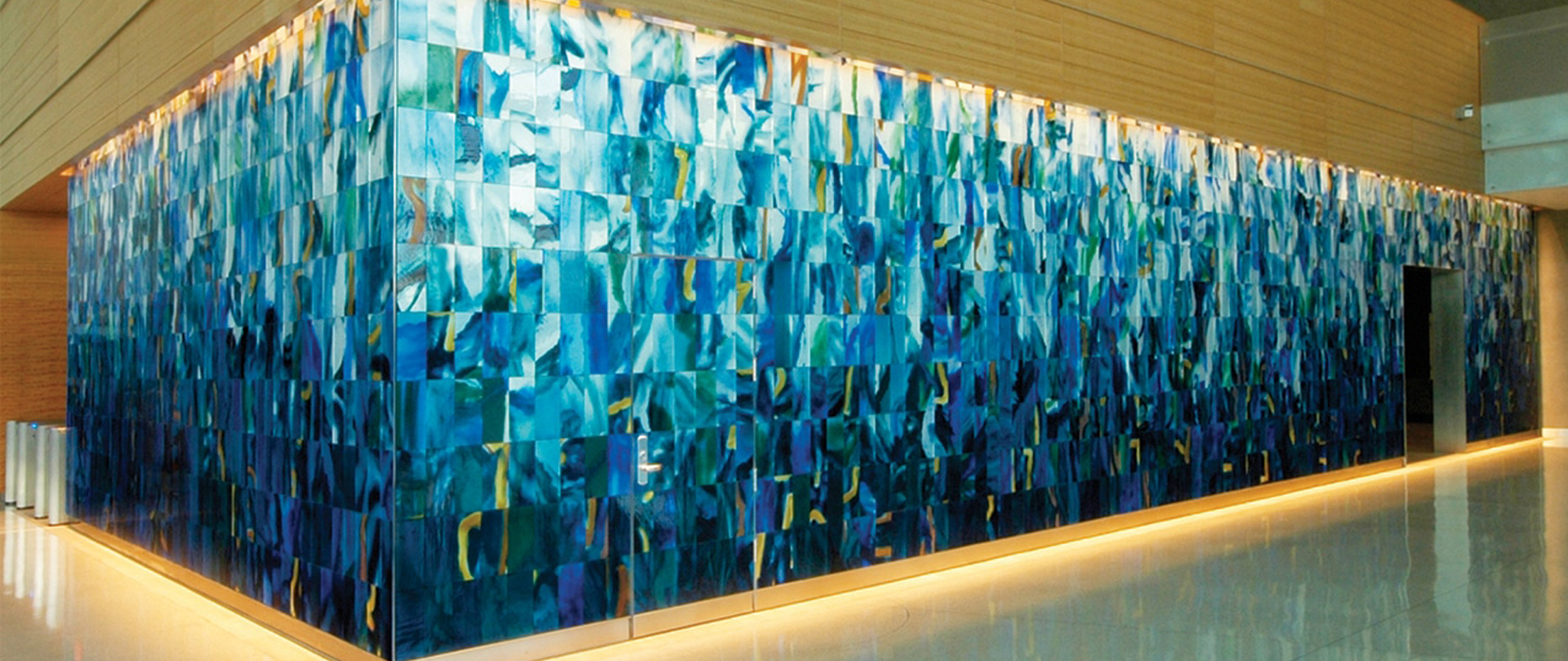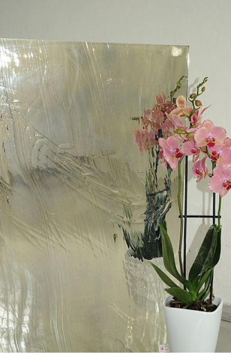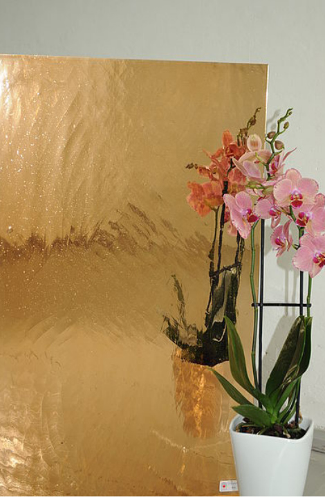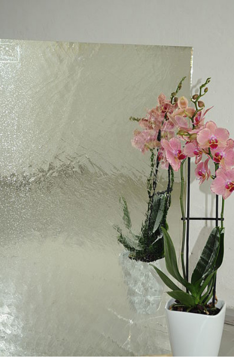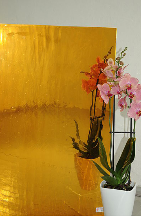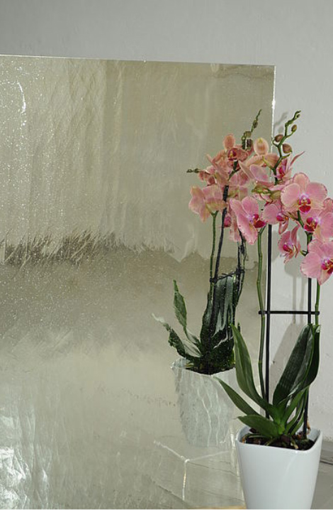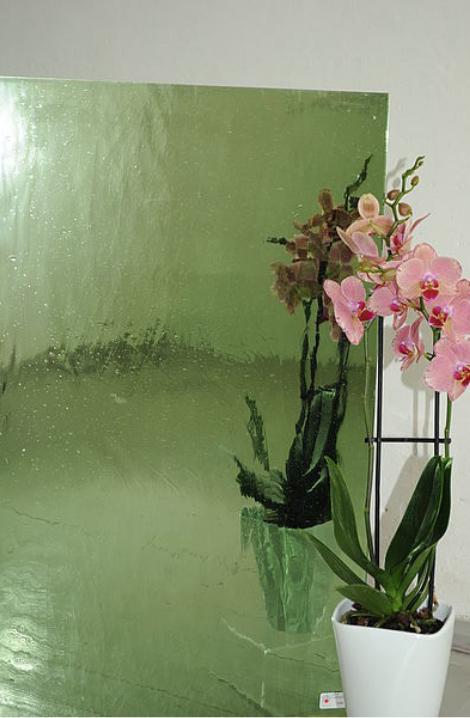 Eine stärkere Brillanz, eine größere Tiefenwirkung und eine kräftigere Farbigkeit sind Markenzeichen dieses mundgeblasenen Spezialglases, dessen einzigartige Glasstruktur mit ihren vereinzelten Bläschen und Schlieren durch den Spiegeleffekt noch deutlicher zur Geltung kommt. Als Designelement im Bereich der Innenarchitektur bieten sich sowohl verspiegelte farbige als auch klare Glastafeln an.