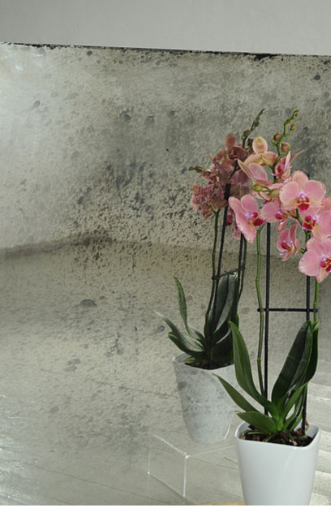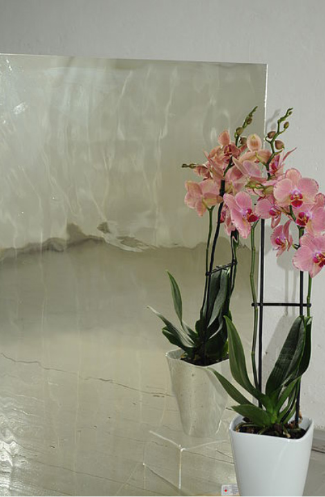 Die einseitige Verspiegelung mundgeblasener oder handgegossener Glastafeln eröffnet neue Wege in der künstlerischen Gestaltung von Mobiliar und Wandflächen.