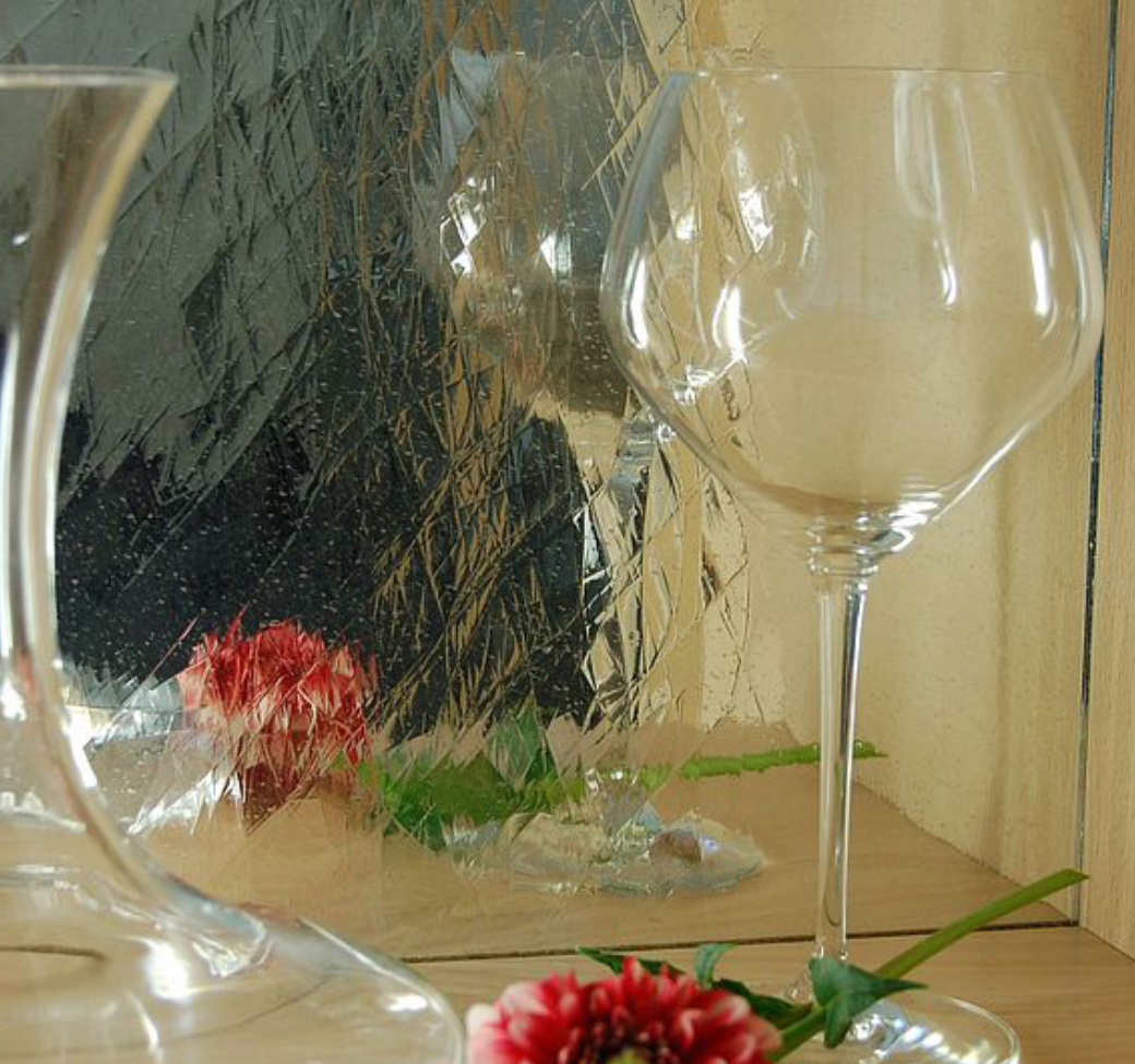 Wird die Spiegelschicht zusätzlich einem künstlichen Alterungsprozess unterzogen, entsteht besonders in Verbindung mit klarem LambertsGlas® der Effekt eines antiken Spiegels. Verspiegelte Gläser lassen sich ähnlich leicht wie die anderen Gläser der Glashütte Lamberts verarbeiten und können auf Wunsch direkt ab Werk bezogen werden.
